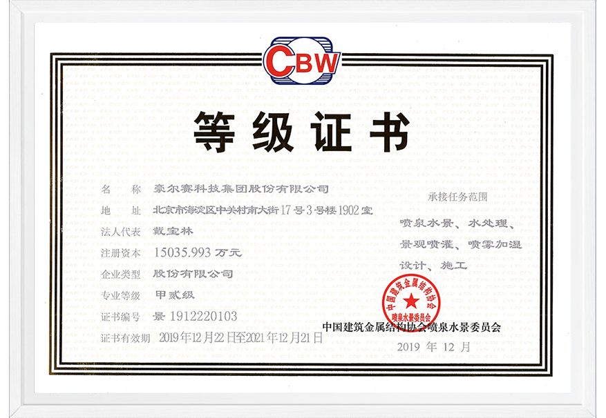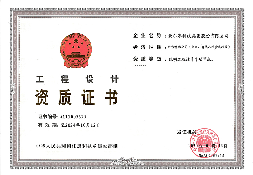 豪爾賽集團(tuán)是國(guó)內(nèi)首批擁有住房和城鄉(xiāng)建設(shè)部頒發(fā)的"照明工程設(shè)計(jì)專項(xiàng)甲級(jí)資質(zhì)"和"城市及道路照明工程專業(yè)承包壹級(jí)資質(zhì)"的公司,并具備“噴泉水景、水處理、景觀噴灌、噴霧加濕設(shè)計(jì)、施工甲級(jí)”資質(zhì)證書(shū)。公司通過(guò)了 GB/T19001-2016 idt ISO9001:2015 & GB/T50430-2017質(zhì)量管理、 GB/T 2401-2016 idt ISO14001:2015 環(huán)境管理、 GB/T 45001-2020 idt ISO45001:2018 職業(yè)健康安全管理等體系認(rèn)證、且獲得國(guó)家權(quán)威資信評(píng)估機(jī)構(gòu)的AAA資信等級(jí)認(rèn)證。